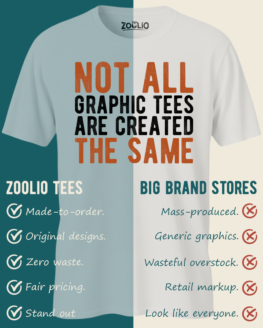 Each Zoolio tee is printed on-demand to ditch waste and overproduction.